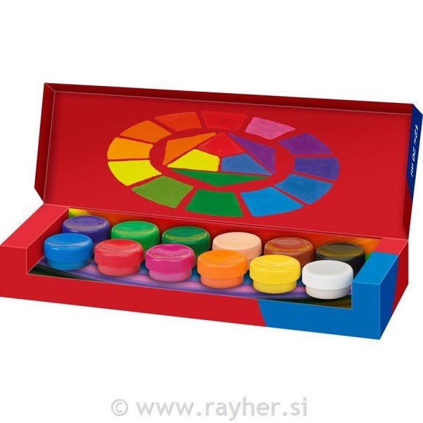 Vodotopne tempera barve, pripravljene za uporabo, za vrtec, šolo in prosti čas. Visoko pigmentirane neprozorne barve za široko paleto tehnik barvanja in mešanja.