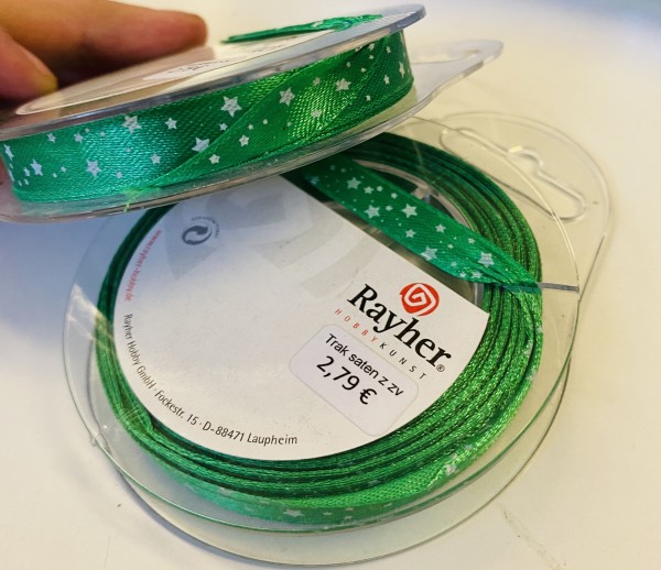 TRAK SATEN Z ZVEZDAMI, ZELEN, 1CM, 10M